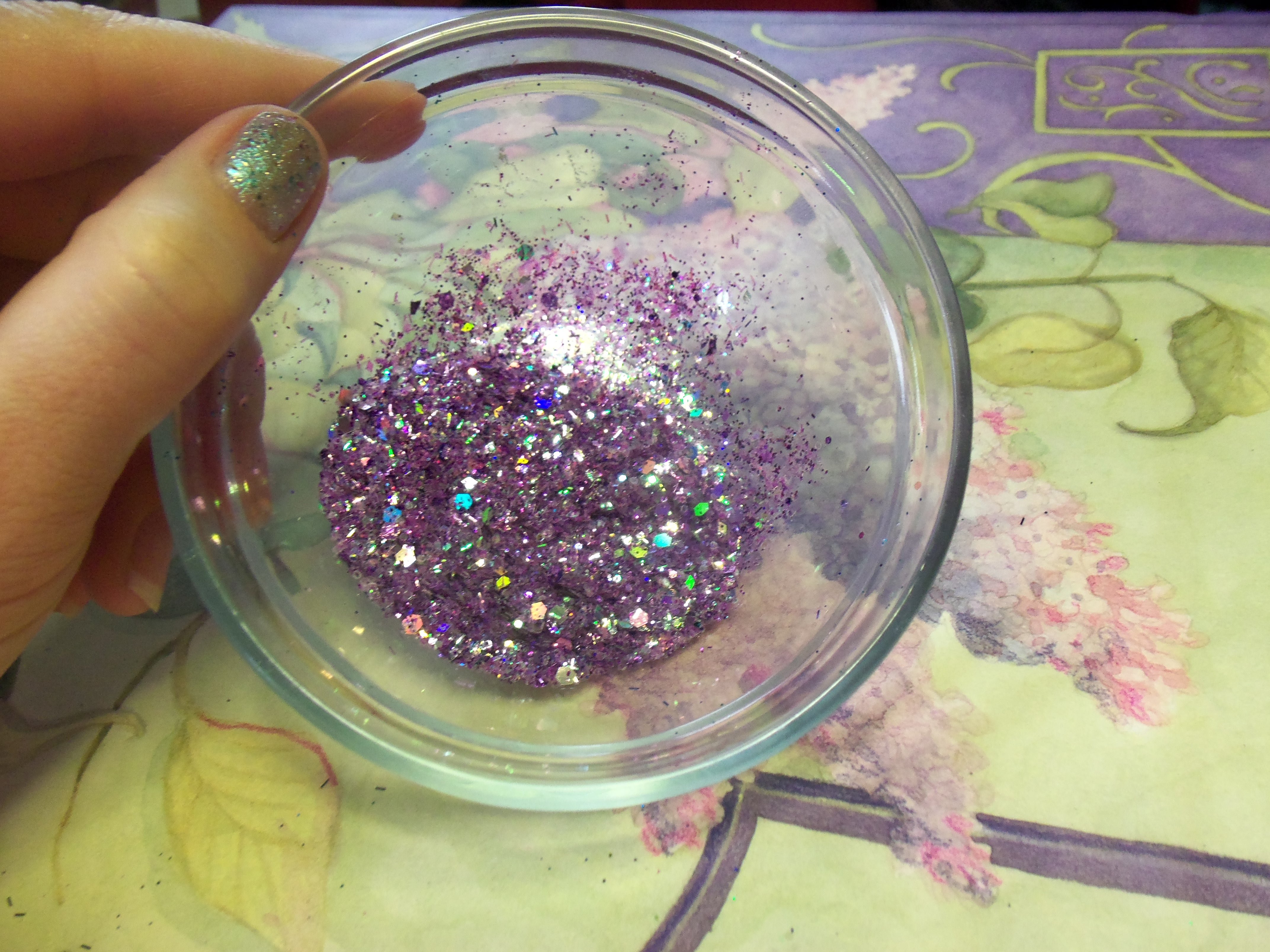 Lilac Glitter Mix. Has a ton of different types of glitters in it. Its has mainly purple glitter of all types. It has a ton of Holographic glitters in it. Glows in the dark.