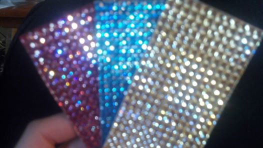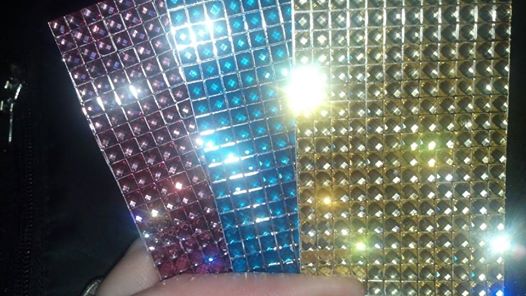 Gem Sheets 2 inch X 4 inch. Blue, Pink or Gold. It has a sticky backing that you peel off and stick to any surface or use your own glue to help it stick better. You can cut the sheet into any shape you want. One Sheet included per order please note what color you want when you checkout..
